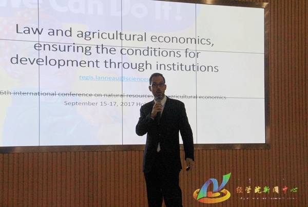 上午的学术交流演讲正式开始。修长百教授以中国宏观社会经济的视角详细分析了中国农业和农村发展的经验与教训并提出了解决方案。蒙古国哲学博士、经济学科学博士Bakei Agipar从牧区畜牧业的可持续发展概念、发展趋势、战略方向,牧场和牧民的关系,承载能力和家畜数量,家畜生产等方面对蒙古牧区畜牧业可持续发展的一些相关问题进行了讲解。澳大利亚昆士兰大学Scott Waldrom教授以中国和蒙古国羊绒产业的发展为主题进行演讲,将两国的羊绒产业进行对比分析,运用最新的宏观数据,详细的介绍了羊绒产业的发展现状。内蒙古自治区社科院研究员敖仁其从草原所有权制度、草牧场产权制度改革、各个主体的职能三方面分析了草、牧场确权历史与现状。巴黎第十大学Lanneau Regis副教授以法律与农业经济通过制度保障发展的条件为主题,他通过列举小岗村的事例,提出了法律经济学对制度效率的探讨,并对学者们提出的问题进行详细的解答。上午的会议于中午12:10结束,并将于下午1:00继续进行。