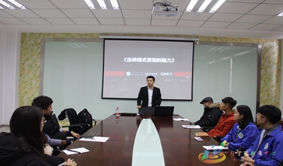 王班堯老师在演讲过程中时常穿插互动,同学们也积极配合,聚精会神地聆听并回答王老师提出的问题。本次讲座以《连锁模式复制的魅力》为题,结合现实企业经营模式为同学们讲解了什么是连锁企业及连锁企业的重要性。同时他由浅入深、由表及里地向同学们讲解单店、多店及连锁店的区别。为了使大家更好地理解,他将专业术语通俗化,还通过与同学们聊大学现状及毕业方向等话题来提升本次讲课的趣味性。本次讲座深入人心,教室里几度响起热烈的掌声。