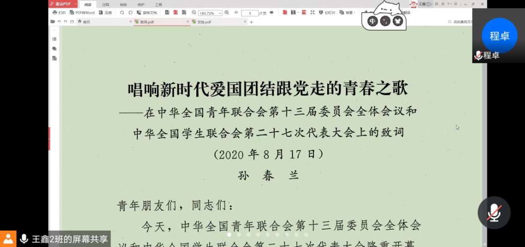 会上,各团支部围绕杜绝舌尖上的浪费、培养勤俭节约习惯的号召,从粮食现状和国家政策两个方面展开学习,同学们纷纷发表自己的心得体会,并表示要即刻行动、从自身做起。随后,同学们学习了习近平总书记贺信和全国学联二十七大精神,要求同学们要紧跟时代步伐,把握青年工作特点和规律,深化改革创新,组织动员广大青年和青年员工坚定跟党走、奋进新时代,为党和国家事业发展作出新的更大的贡献。接着,同学们观看了习近平总书记在全国抗击新冠肺炎疫情表彰大会上发表的讲话,习近平总书记在大会上向作出杰出贡献的功勋模范人物颁授共和国勋章和国家荣誉称号奖章,表彰抗疫先进个人和先进集体,弘扬伟大抗疫精神。活动中同学们纷纷表示,将牢记教诲,不忘初心使命,坚定深化改革,努力团结凝聚广大青年和青年员工听党话、跟党走,为实现“两个一百年”奋斗目标、为实现中华民族伟大复兴的中国梦而不懈奋斗!