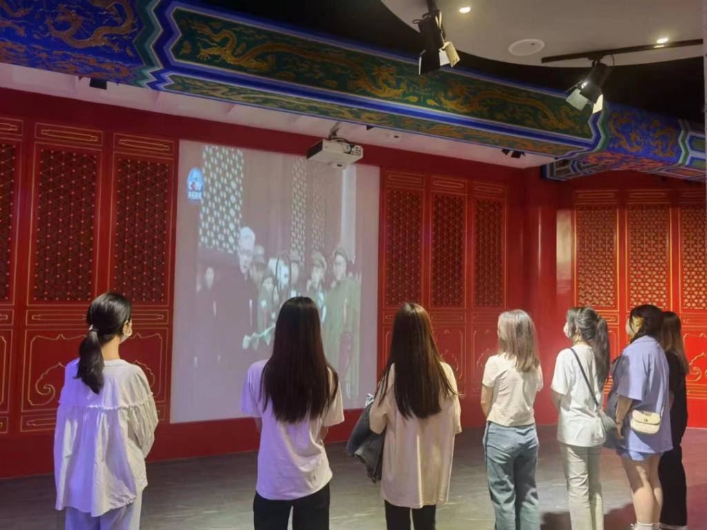 通辽市开发区党群活动中心作为集立体性、灵活性、实用性于一体的党史学习教育情景课堂,内设党史厅、中国精神厅等七个主题展厅,及统战群团活动室、社会组织党群活动室等八个功能活动室,是党史学习教育的新型红色阵地。在讲解员的带领下,实践队队员们来到中国精神厅近观一件件文献物品、一幅幅历史照片,并通过红色影片共同缅怀老一辈革命功绩,感受红色史诗,回忆风雨飘摇的革命岁月,重温中国共产党百年奋斗历程。队员们充分领略到了中国精神的深刻内涵,了解中国精神背后的故事,体会革命先辈锐意进取、开拓创新的高尚品质。