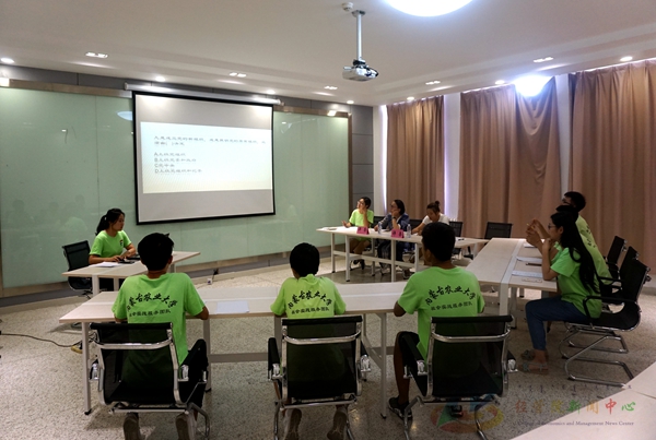 此次竞赛的主题为“一学一做”和“自治区成立七十周年”两部分,参赛队员分为两组,以必答题、抢答题、讨论题的形式进行比赛。赛前,各组队员个个意气奋发,信心满满,洋溢着青春的活力,为比赛做好了充分的准备。比赛过程中,两组选手你争我抢,毫不示弱,展现了选手们敏捷的思维与丰富的知识积累。在场的每一位选手都积极抢答,为各自队伍争取荣誉,整场比赛激烈而有趣。活动最后各位实践队成员纷纷发表了在实践期间中的感受,成员们都认为实践活动为他们带来了不可衡量的意义,并在实践中收获了许多。海老师在最后为此次活动进行了总结,她希望同学们认真感受实践的快乐,在实践中增长才干。