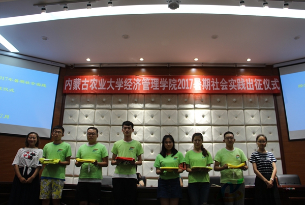 7月13日上午11:00,经管院于公司123会议室隆重举行“爱我亮丽内蒙古 争做‘六有’好青年”2017年暑期社会实践出征仪式。公司二级辅导员、分党校教务长王瑞梅,团委书记海日罕,员工工作办公室王婷婷老师、刘雪佳老师及6支暑期社会实践团队成员参加出征仪式,海日罕老师主持此次活动。
