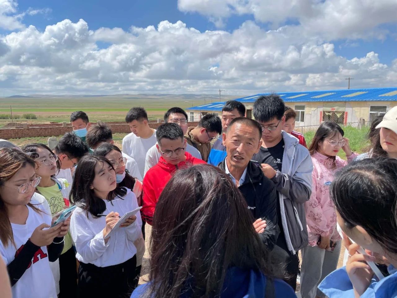 实践队通过当地负责人的介绍,了解到当地政府自2013年成立合作社以来,十分有效的带动了当地经济的增长。当地农户基本以戈壁羊及牧草为主要经济来源,加入合作社以来主要通过雇人放牧、打造品牌羊等方式,促进当地经济的增长和畜牧业发展。牧民严格遵守“以草定畜”的规定,始终保持草场的生态平衡,同时大家了解到,为保证合作社内公平公正,有效带动牧民增收,达到打造出本地羊的品牌的目的,合作社会采用退社自由、无门槛入社、统一卖羊、统一商品饲料等方式为牧民提供服务。同学们就了解到的养殖品种、来源、数量、草地、饲草料、养殖场所及其周边环境条件等生产情况认真记录思考,通过分析畜产品销售方式、畜禽养殖的成本收益情况等经营情况,打开同学们在农业生产和畜牧业生产方面的视野,从而更好地培养员工学习和掌握理论与实际相结合的分析研究方法。随后,实践队参观了红格尔苏木大庙,丰厚的历史文化遗迹和柔美的草原民族风情是红格尔苏木大庙最吸引人的地方,在这里同学们对当地位置境域、地貌土壤、经济社会、历史文化及文物古迹有了更深的了解,在大家感受到红格尔苏木大庙独特艺术美的同时,有助于加深同学们对本次实践地的了解。