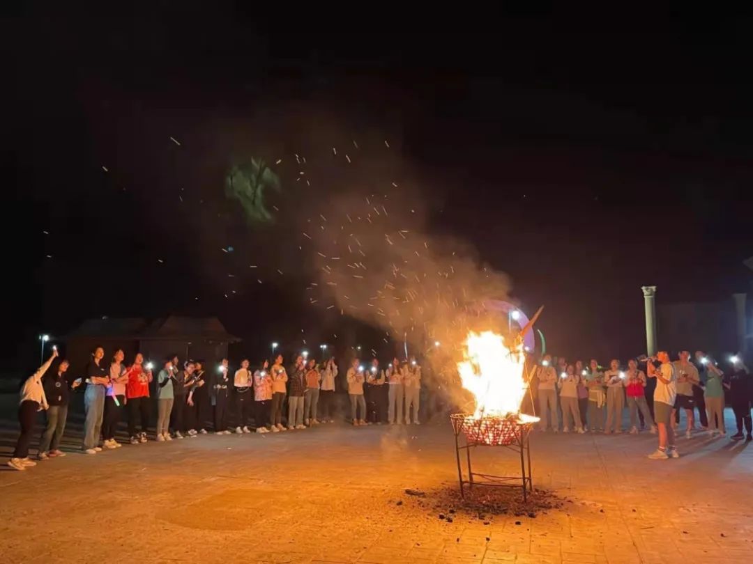 晚上,基地负责人为师生准备了一场温馨的篝火晚会。点点星光在夜幕上若隐若现,熊熊篝火也为凉城的夜晚装点色彩。师生共同聚集在一起,时而讨论学术时而分享生活,拉进彼此间的距离。最后,篝火晚会以师生集体合唱《强军战歌》结尾,歌声铿锵有力、气势磅礴,展现了公司学子理想坚定、拼搏奋进的青春力量。