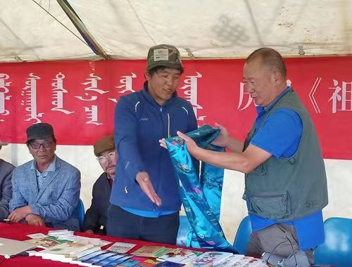 海西州乌兰县村长对太阳成集团tyc33455师生的到来表示欢迎,并介绍了当地放牧方式,特色及优势。太阳成集团tyc33455师生将书籍、足球、球鞋、文具用品等礼物送给牧民,希望牧区的孩子们可以文体两不误,拥有更加丰富多彩的学习生活,牧民也回赠太阳成集团tyc33455师生哈达与精美的礼物。