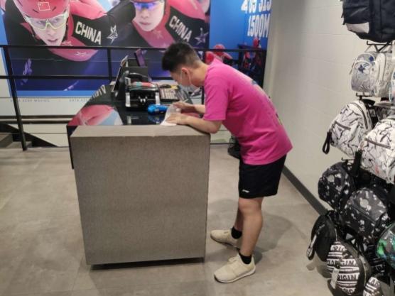 队员们换好统一的工作服,早会过后,同学们扫地、拖地、擦拭柜台和鞋架、整理服装、摆放鞋子等,认真细致地完成店铺每天基础的卫生清洁工作。在店长的指导下,队员们从货号开始学起,知道了每一位数字所代表的具体含义,了解如何将货号与库存货物相联系并正确的对应,整理运动鞋货品并按照货号以及尺码大小进行分区摆放,让同学们对货品有了更深入的了解。此外,队员们还对基础的收银知识进行了系统地学习,学会了填制调货单以及一些基本的销售方法,将所学会计专业的相关知识与实践进行了紧密结合,同学们收获颇丰。