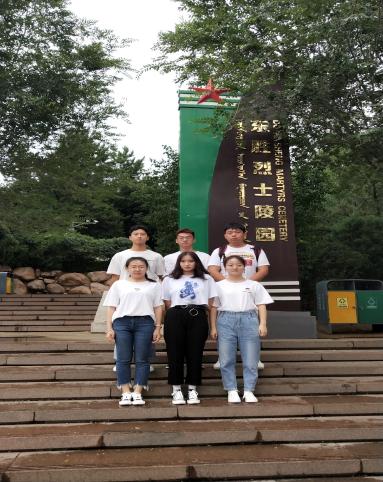 队员们迈着轻柔的脚步,怀着沉重的心情,踏上一层层台阶,向庄严而肃穆烈士纪念碑望去,那傲然屹立的石碑仿佛在无声地诉说着中国百年的流转变迁与革命发展。鲜花敬英雄,浩气存天地。在向先烈献花后,队员们仔细浏览了蒙汉文兼具的烈士陵园志铭,这象征着各民族团结一致,同仇敌忾。在这里,没有嬉笑,没有打闹,有的只是伫立与敬佩。“哪有什么岁月静好,不过是有人替我们负重前行。”百年前的中华大地上,硝烟弥漫,无数革命先烈、仁人志士挺身而出,无数英雄挥洒着热血写下一个又一个传奇,为了民族未来、国家大义被永远埋在了他们战斗的那片土地。在实践参观过程中,同学们时而驻足沉思,纷纷表示传承弘扬英烈精神,吾辈义不容辞,虽然无法亲眼见到他们当年的英姿,但是英烈们爱国、不屈、勇敢、奉献的精神永远值得新时代的青年们学习与铭记。