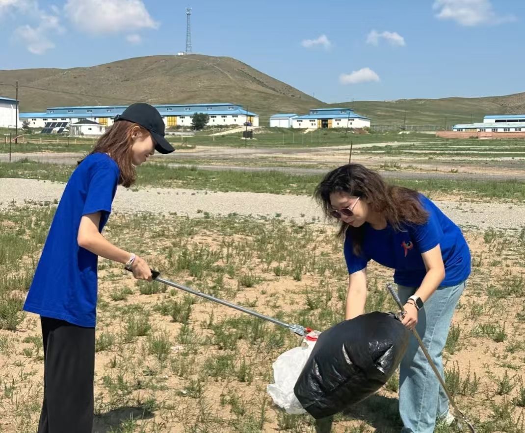 实践第三站,队员们来到锡盟草原开展环保志愿活动,队员们在捡拾草原停车场及周边垃圾的同时,向游客宣传环保知识,在队员们的积极引导下,许多游客自发加入,在大家的努力下景区很快恢复原貌。队员们表示作为新时代的青年,理应作为环境保护先锋,以实际行动保护家乡环境,并不断带动身边的人,共建美丽中国。