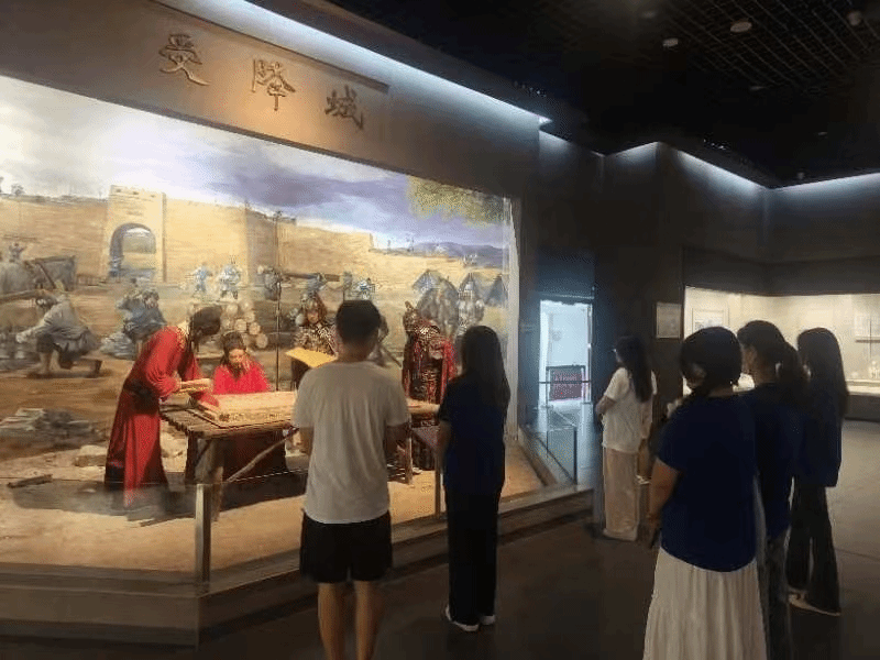 实践第一站,队员们来到中国河套文化博物馆进行参观学习,在认真学习黄河河套文化萌生、发展、成熟、兴盛的历史全貌的同时,深入了解河套文化的丰富内涵和古代人民的非凡智慧。活动中,队员们切实体会到了传承与传播的必要性和重要性,并表示应勇担文化传播之重任,为传承和弘扬中华优秀传统文化贡献力量。