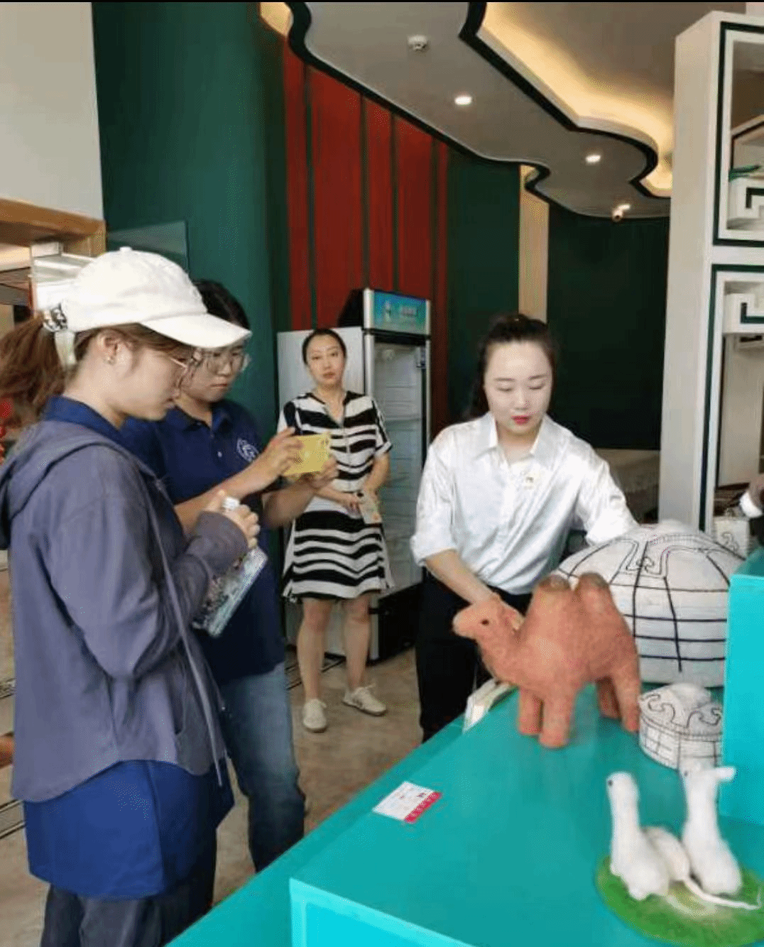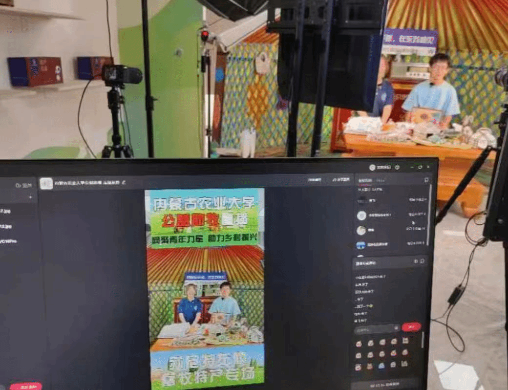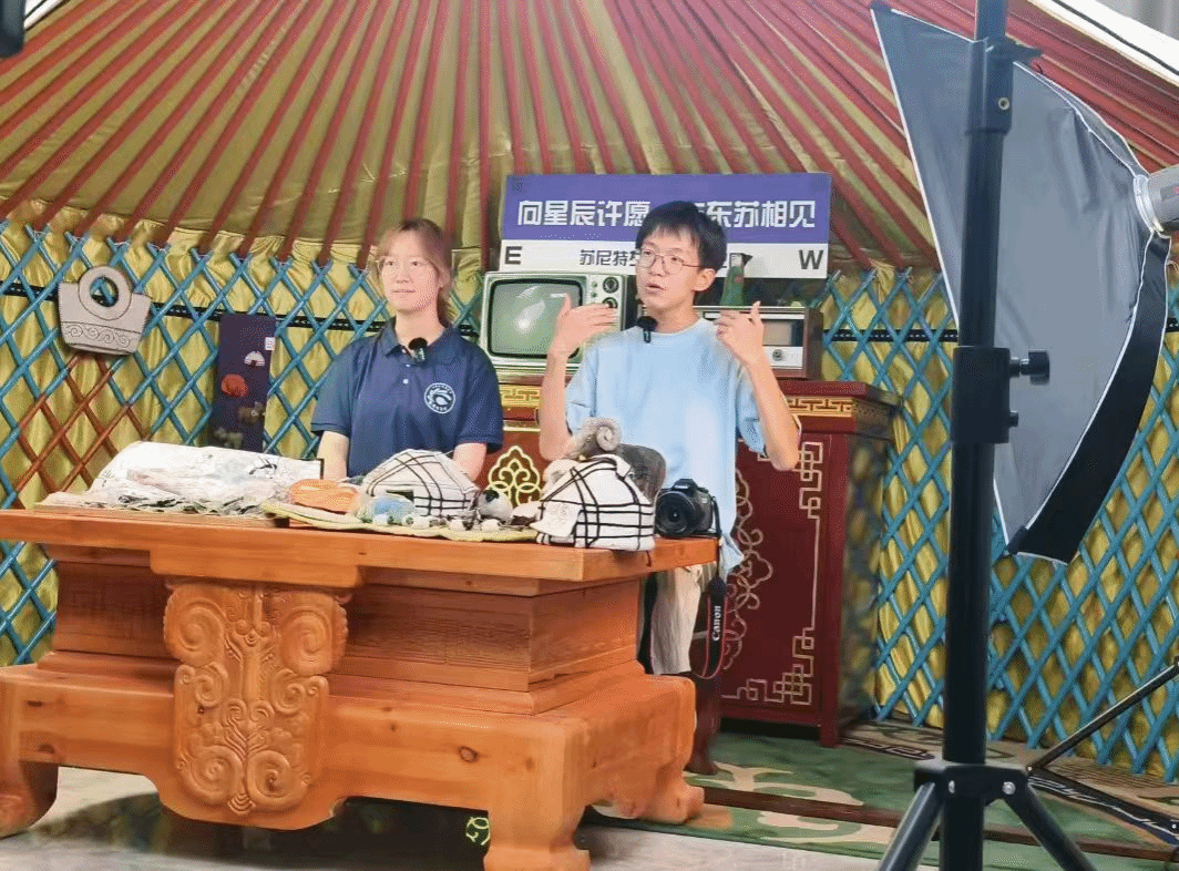 随后,师生一行来到苏尼特左旗创业孵化园区展开调研。队员们了解了园区内推出的一系列惠企政策,参观了园区内的民族企业和纯手工羊毛玩具的制作过程。参观后,队员们前往孵化园的直播间进行公益助农直播,他们热情洋溢又幽默风趣,生动讲解了苏尼特羊肉的独特风味与营养价值,让更多人了解到内蒙古的深厚文化底蕴及其产品的原生态,助力乡村振兴。