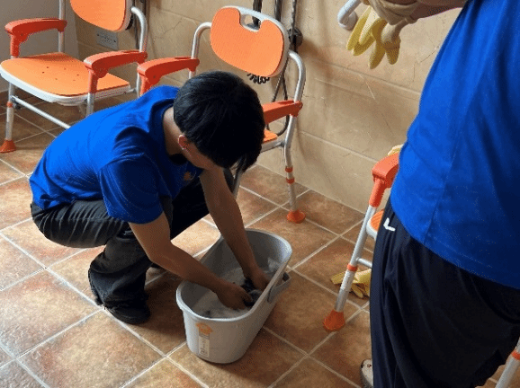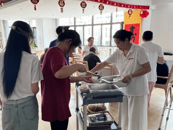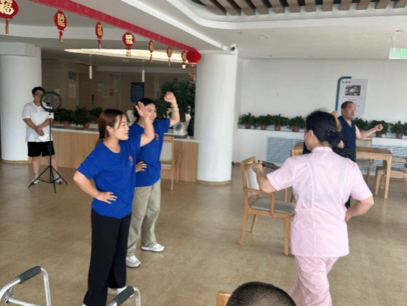 实践第一站,队员们来到乌兰浩特市综合养老服务中心进行志愿服务活动。活动中,队员们首先在工作人员的带领和介绍下了解到养老院的整体情况和布局,随后分工打扫擦拭各层楼道和房间,并陪伴老人娱乐,做有利于身体健康的养生操,仔细聆听老人们的生活故事,还与他们分享了自己在学习和生活中的趣事。这种互动不仅让老人们感受到了被尊重和关怀,也让队员们深刻体会到了敬老爱老的重要性。