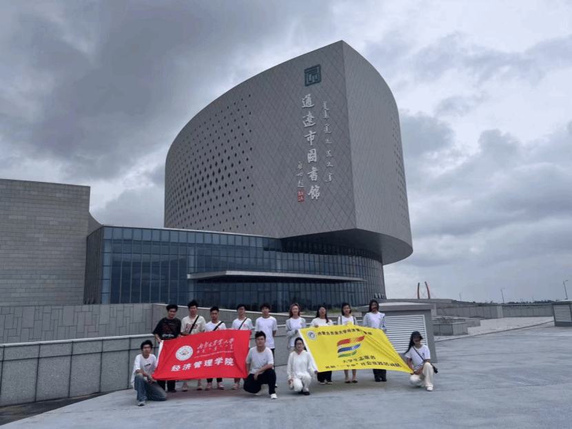 实践第五站,队员们来到了通辽市图书馆进行参观学习。对图书馆进行实地考察,全面观察图书馆的布局、设施和读者活动区域。对读者进行问卷调查,收集读者对图书馆的使用感受和建议,并与工作人员交流,获取图书馆的日常运营、活动组织等方面的信息。图书馆在丰富市民文化生活、推动知识传播方面发挥了重要作用,通过本次实践,我们对图书馆的发展有了更清晰的认识,也希望这些建议能够有助于图书馆更好地服务社会。