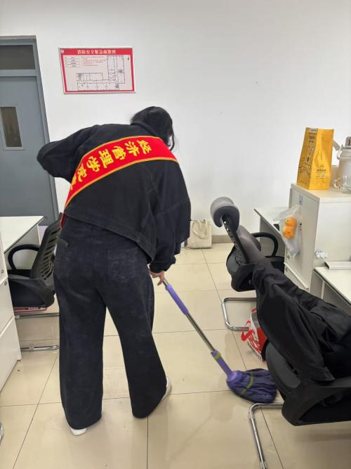 活动过程中,大家行动迅速,分工明确,有条不紊地开展清扫工作。同学们手持扫帚、拖把、抹布等清洁工具,对学习室的地面、桌椅、门窗、书架等角落进行了全面细致的清洁。在清扫过程中,同学们还仔细检查了学习室内的电器设备、插座线路等,及时排除潜在的安全隐患。同时,大家将物品摆放整齐,整理了书籍资料,让学习室焕然一新。