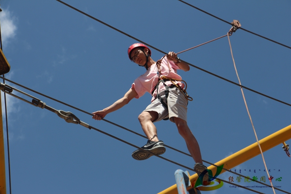 副园长韩煜提出,高空拓展训练是一项充满激情和冒险精神的运动项目,这让很多志愿者们跃跃欲试。在高空完成各种项目不仅是志愿者为团队争光,也是对自己的一次挑战及超越。活动中各组队员相互鼓励,共同协作,充分运用自己及团队的力量成功触摸到了蓝天。骄阳似火,热情不减。公司志愿者没有一个人畏惧,没有一个人退缩,每个人脸上都洋溢着胜利的喜悦,已经完全融入在拓展训练这个项目中。