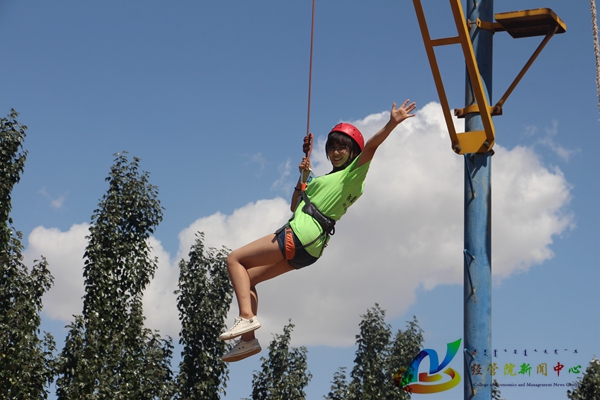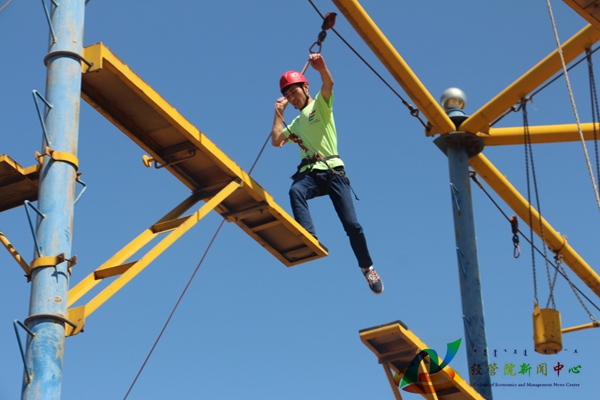 7月22日上午8:30,经管院暑期社会实践乌海直属队于青少年创意园区内进行高空拓展训练。