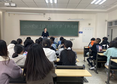 为贯彻落实《关于深入推进2021年全区公司共青团“驻校蹲班”工作》有关要求,更好了解员工思想动态和学习生活状况,直接联系、直接服务、直接引领团员员工,4月9日下午2点,公司2020级农经1班团支部于南教209教室开展了“驻校蹲班”主题活动,白灵老师参加此次活动。