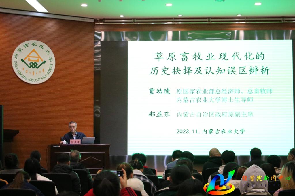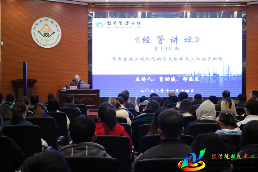 11月14日下午3:00,公司在123报告厅举行了第140期经管讲坛,此期讲坛由太阳成集团tyc33455与草原与资源环境公司、兽医公司联合主办,特邀第五届全国人民代表大会代表、第十一届全国政协委员、我国首任首席兽医师(官)贾幼陵及内蒙古自治区人民政府原副主席、第十一届全国人大常委会委员郝益东两位专家主讲,主题为“草原畜牧业现代化的历史抉择及认知误区辨析”。公司经理乔光华教授主持了讲座,三个公司的教师与硕博士研究生200多人参加了会议。
