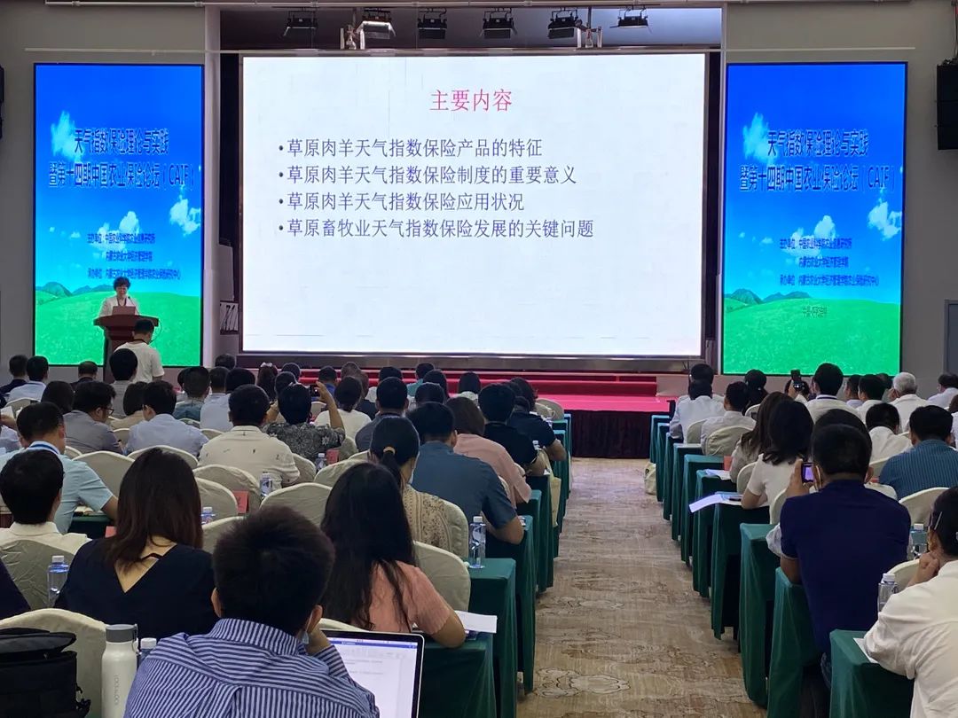 三、天气指数保险的设计与优化。中国农业科公司农业信息研究所赵思健研究员,以“基于互联网的农业天气指数服务平台创新研究”为题、内蒙古自治区生态与农业气象中心王永利副主任,以“内蒙古牛羊天气指数保险设计及优化”为题、中国人民大学统计公司肖宇谷副教授,以“农作物双触发组合指数保险研究”为题、师门郭新雅博士,以“草原天气指数保险:风险区划及费率厘定研究”为题,分别进行了汇报发言,提出保险合约设计、服务平台创新及费率科学厘定对促进天气指数保险高质量发展意义重大。