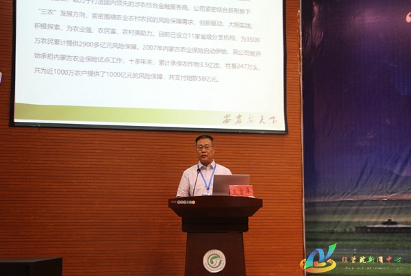 据了解,公司农业保险研究团队十年来围绕农牧业风险管理尤其是农业保险领域已展开大量的深入研究和政策咨询,并取得了显著成绩。本次会议分为上午和下午两场。上午场的第一阶段,由公司经理乔光华主持。首都经济贸易大学教授、博士生导师庹国柱,公司农业保险研究团队负责人赵元凤教授分别做了专题报告,并与其他与会人员进行了较为深入的互动交流。上午场的第二阶段,由河北经贸大学教授冯文丽主持。中国农业科公司农业信息研究所研究员、博士生导师张峭,中国人民财产保险股份有限公司内蒙古分公司农村保险事业部、保险扶贫事业部经理张汉全,安华农业保险有限责任公司农业保险业务总监赵乐三位嘉宾围绕农业保险这一主题展开讲述。