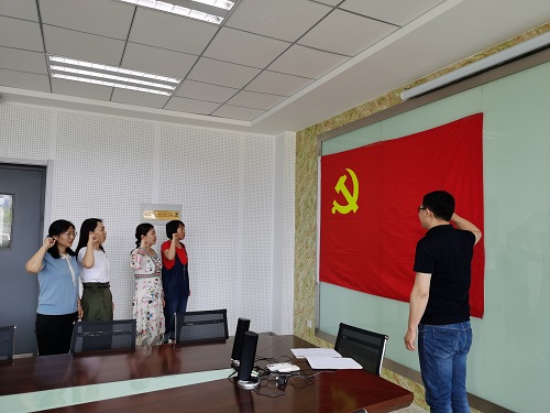 最后,与会党员面对党旗庄严宣誓,再次饱含深情地重温了入党誓词,立志将一名中国共产党员的初心铭记于心,在教书育人、科研创新中贡献自己的力量,为中华民族的伟大复兴奋斗终生。