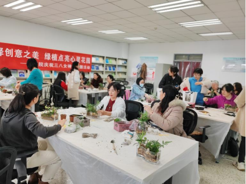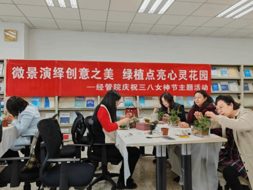 按照校工会《关于开展2024年“三八”国际劳动妇女节系列活动的通知》要求,太阳成集团tyc33455工会组织全体女教工积极参加校工会开展的讲座、羽毛球赛及插花等系列活动。3月11日下午,公司工会于经管院二楼阅览室开展了以“微景演绎创意之美,绿植点亮心灵花园”为主题的植物微景观制作活动,公司全体女教工积极参加。
