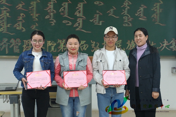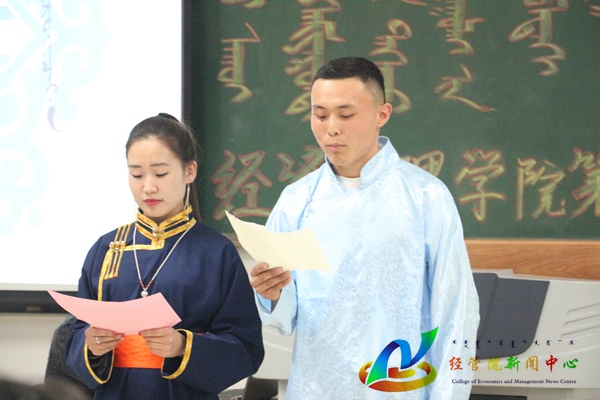 4月7日晚上7:00,经管院于南教A325举办第四届弘扬民族文化节系列活动之知识竞赛的决赛。公司根锁教授,蒙二班班主任杜福林,农经蒙一班班主任包慧敏,以及学办老师苏宁巴乐,青格乐老师,斯琴塔娜老师担任比赛评委,农经蒙一班、蒙二班和金融预科班的同学到场观看此次竞赛。