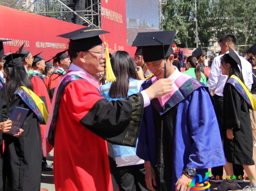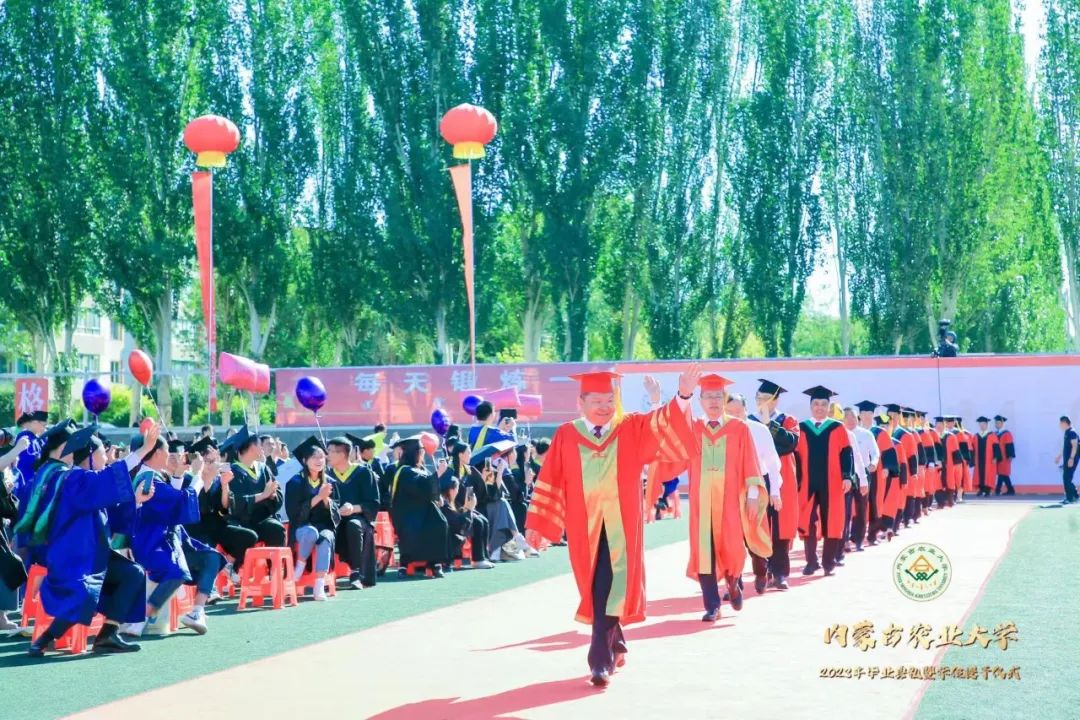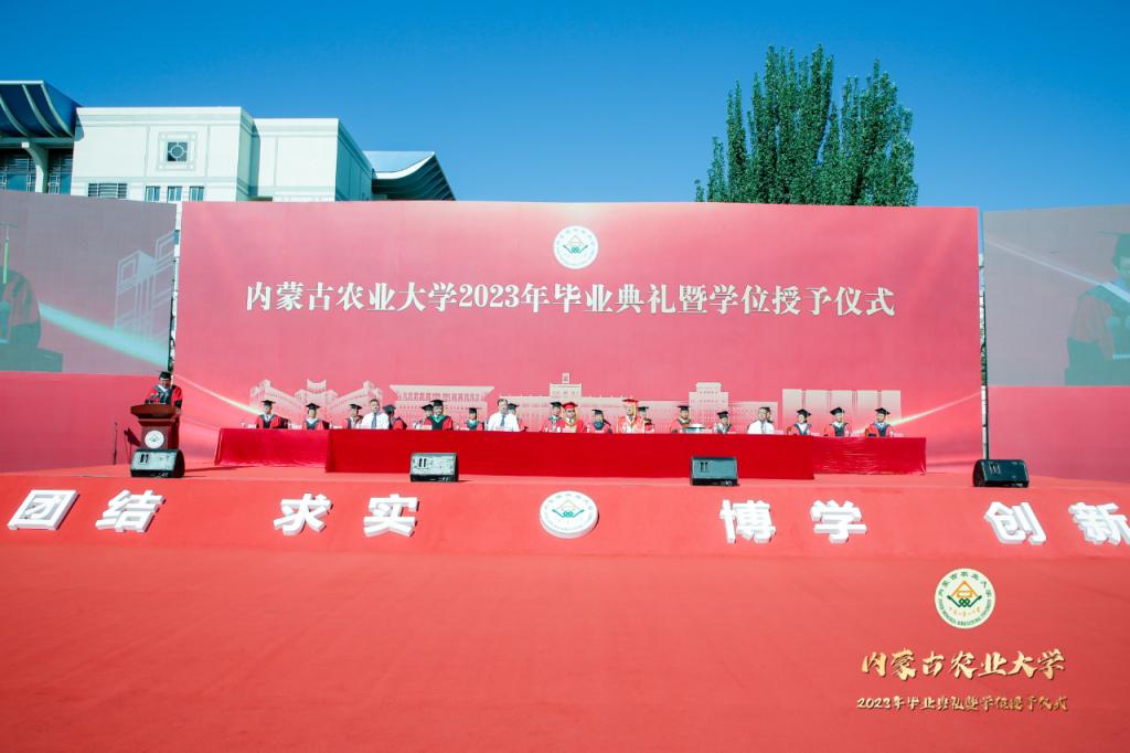 毕业典礼在昂扬的国歌中拉开序幕,仪式中李兴旺宣读学位授予决定,董贵成教授宣读《关于表彰2023届优秀毕业生的决定》,陈永胜为自治区级优秀毕业生代表颁奖,为第25届研究生支教团授旗。