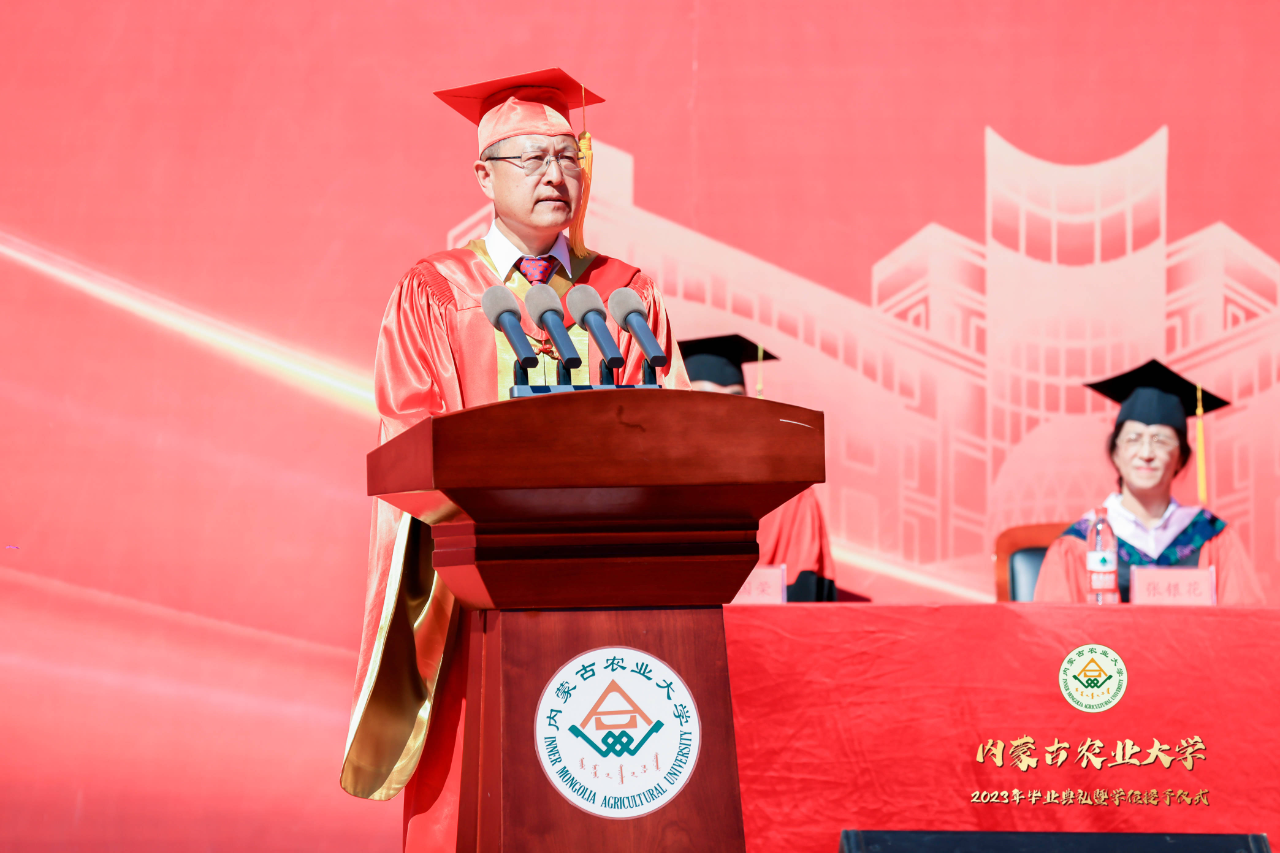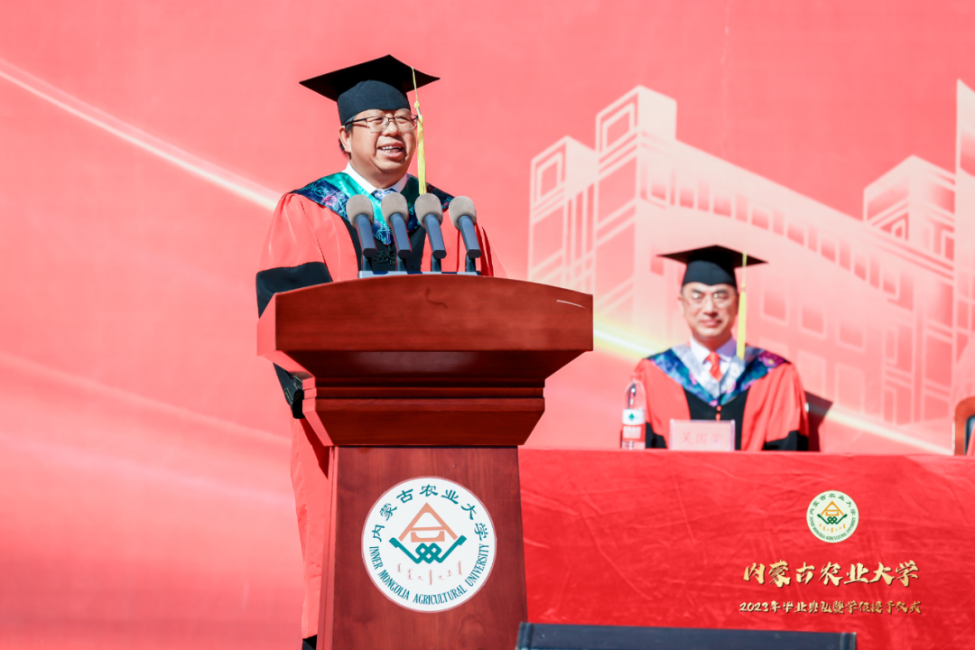 公司党委副书记、董事长高聚林教授讲话发言,祝贺全体毕业生成功完成由在校员工向社会转型,希望全体毕业生发扬农大人“朴实、踏实、诚实、求实、务实”的“五实”精神,厚植爱农情怀,练就兴农本领,在走向社会后在属于自己的领域发光发热,创造属于精彩人生。随后为毕业博士研究生及优秀毕业生授予学位并颁发证书。