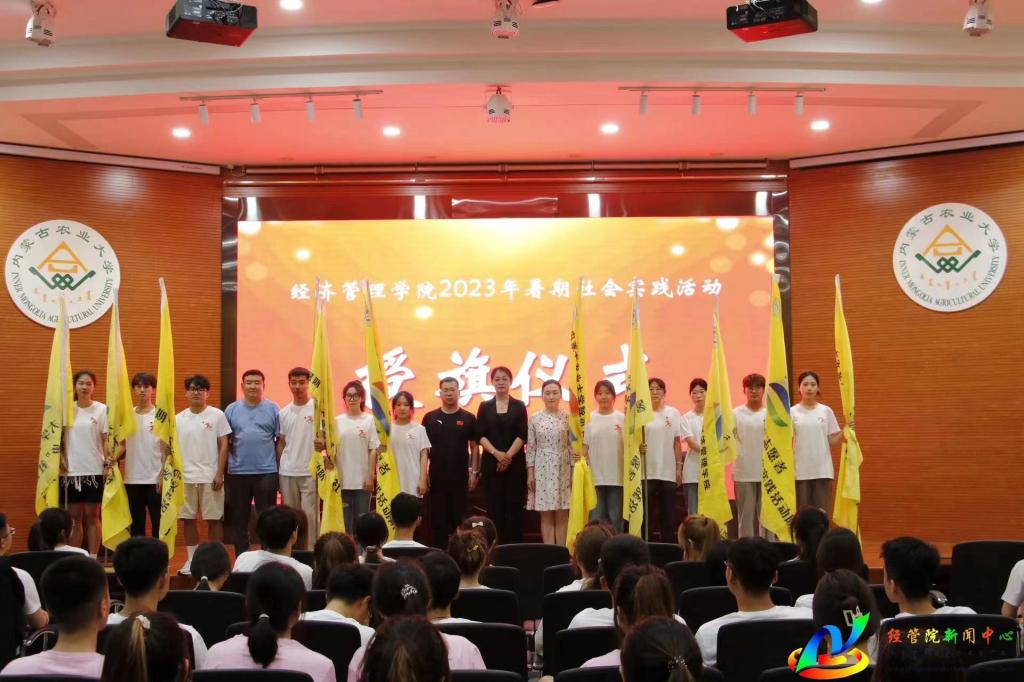 此次社会实践活动于呼和浩特、包头、乌兰察布等地共组建了12支社会实践直属队,通过深入社会、深入基层、深入群众、深入生产生活一线,积极融入脱贫攻坚和乡村振兴,提升自我,丰富自身履历。仪式上,2022年社会实践员工代表李亚楠分享了往年的社会实践经验,她希望同学们能够在社会实践中开阔视野,进一步明确青年员工肩负的历史使命。2023年社会实践员工代表史欣瑶代表全体成员发言,她表示在接下来的实践中将遵守纪律、克服困难、团结协作、全力以赴,力争圆满完成各项实践任务,努力提升个人价值,展现经管优良形象。