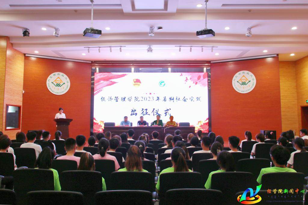 7月3日上午11:00,公司于经管院123报告厅开展2023年暑期“三下乡”社会实践活动出征仪式。公司党委副书记斯日古楞、公司学办主任徐金鹏、公司组织员苏宁巴乐出席本次活动,公司团委书记白灵主持本次仪式,2023年暑期实践队全体同学积极参加。