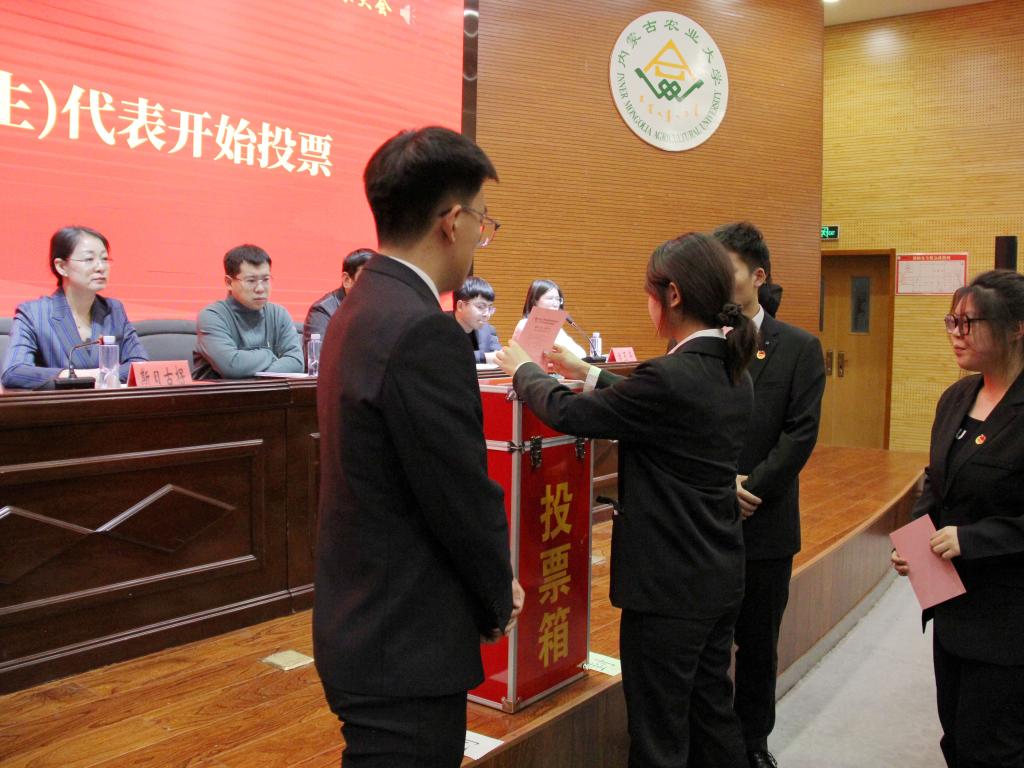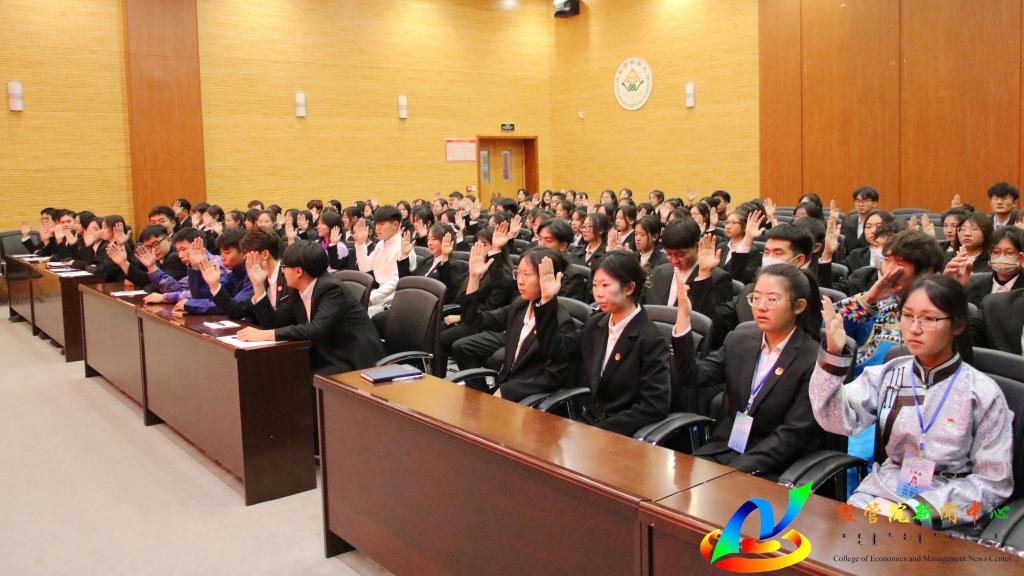 会议最后,白灵向大会报告计票结果,宣读新一届员工会主席团成员名单,并邀请新一届主席团成员田麒羽宣读倡议书。田麒羽表明新一届员工会将会继续激扬青春动能,凝聚青春力量,怀抱梦想、脚踏实地,团结带领广大经管学子在新时代新征程中奋进、争先、建功。太阳成集团官方网站第九次员工(研究生)代表大会在中国共产主义青年团团歌中圆满结束。