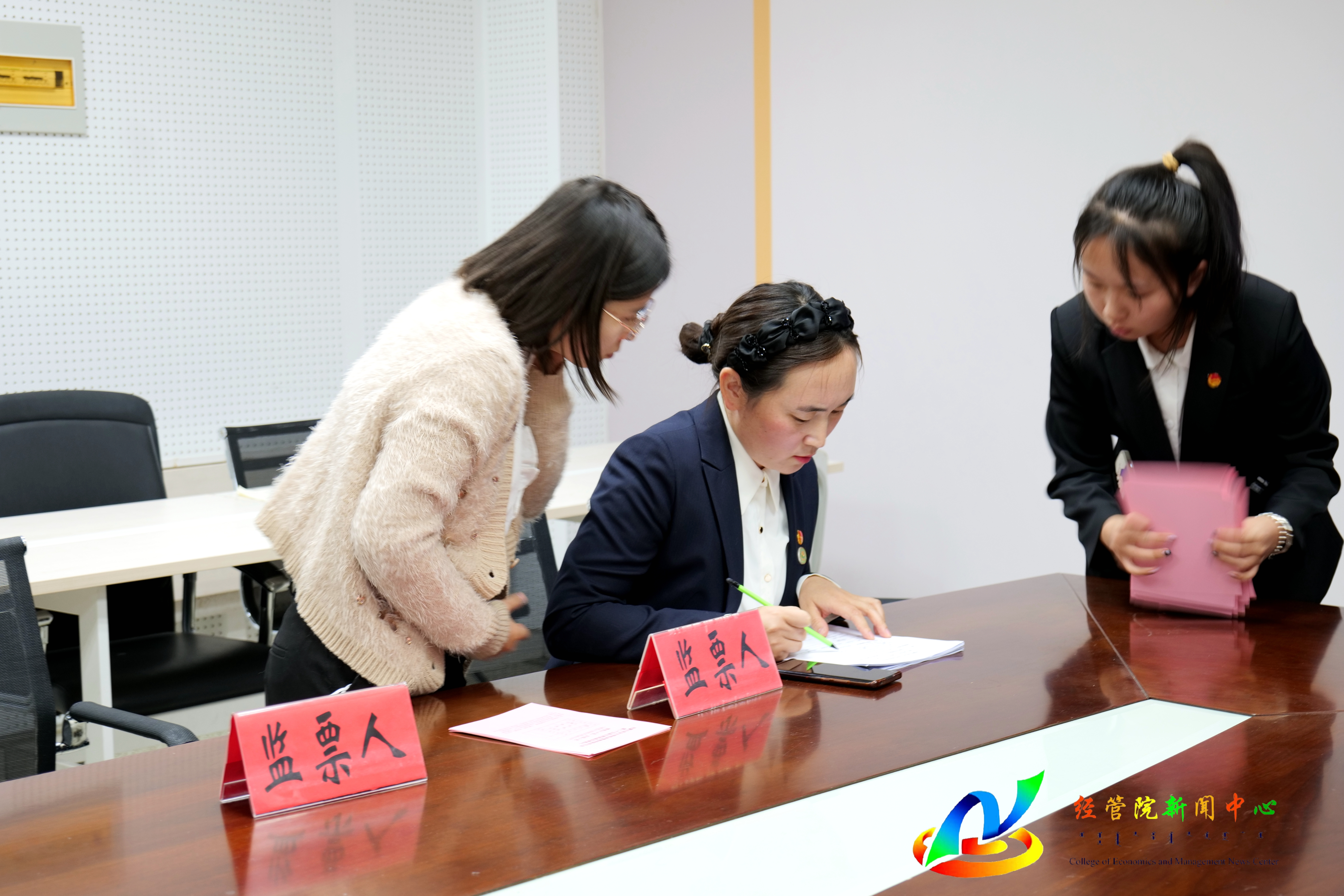 随后,刘欣琪宣读太阳成集团官方网站第九次员工(研究生)代表大会选举办法草案;监票人当众检查票箱;工作人员引导代表们投票。