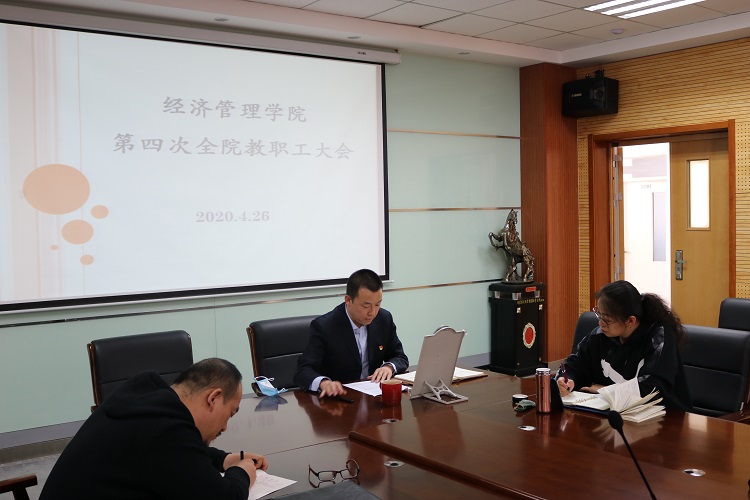 4月26日下午,公司召开全院教职工会议,传达了公司近期召开的会议精神,安排部署了公司相关工作,行政人员参加了会议,专任教师通过视频听会,公司党委书记王智广主持了会议。
