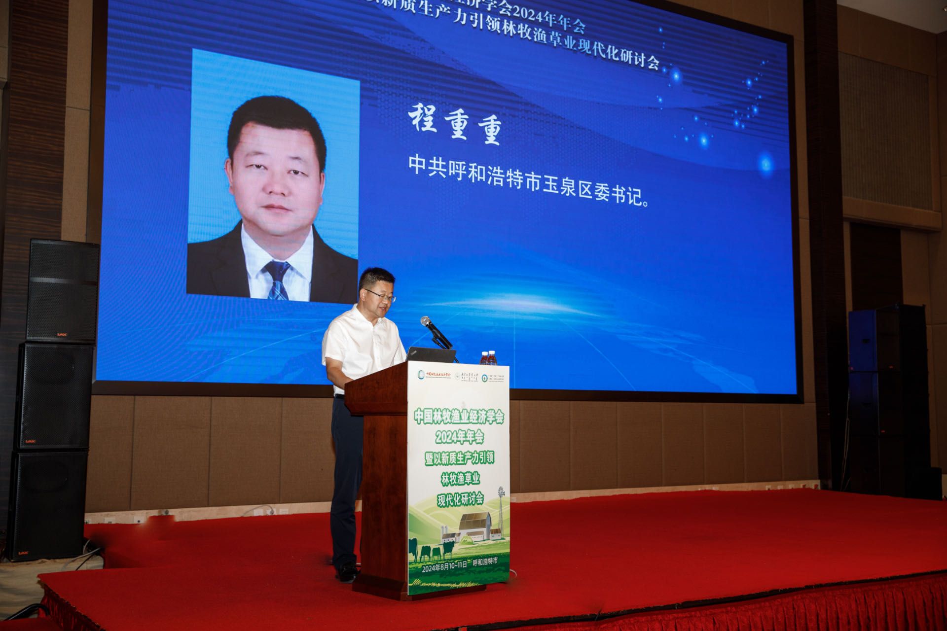 中国林牧渔业经济学会秘书长、中国社会科公司农村发展研究所研究员刘长全主持开幕式,中国林牧渔业经济学会会长、中国社会科公司农村发展研究所所长魏后凯致开幕词,强调了林牧渔草业在国家经济发展中的重要地位,提出培育和发展新质生产力,推动产业现代化转型的关键性,并对与会嘉宾表示热烈欢迎。董事长高聚林致辞中表示公司高度重视此次研讨会,期待与会专家学者在草学、食品科学、种质资源、畜牧研究等方面多提宝贵意见,共同为推动林牧渔业现代化、助力农业农村现代化作出贡献。内蒙古农牧业科公司党组书记孙国权、中共呼和浩特市玉泉区委书记程重重分别致辞,表达了与各科研单位加强合作的愿望。