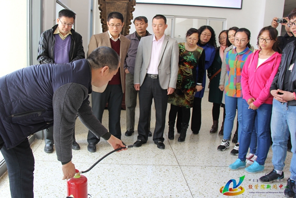 为提高经管院教职工消防安全意识和应急避险的能力,在校保卫处消防科刘永军、李秉元等同志的指导下,公司进行了2016年春季教职工消防演练,公司分党委书记赵国年,经理乔光华,党委副书记王智广,行政教辅科室负责人及教师近20人参加了此次演练。