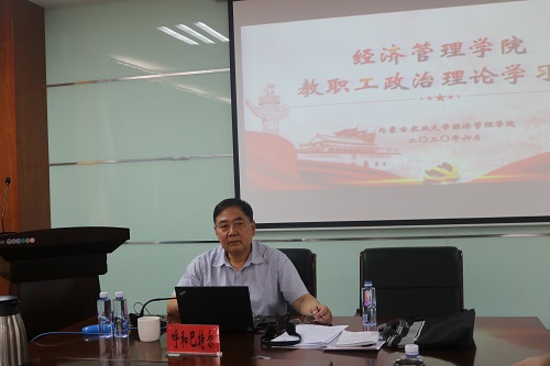 6月18日下午,公司于519会议室召开第五次全院教职工政治理论学习会,特邀全国人大代表、公司兽医公司呼和巴特尔教授作全国“两会”精神专题辅导报告。公司领导、系主任、行政人员现场参会,专任教师线上参会,公司党委副书记斯日古楞主持了会议。