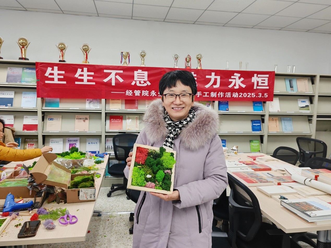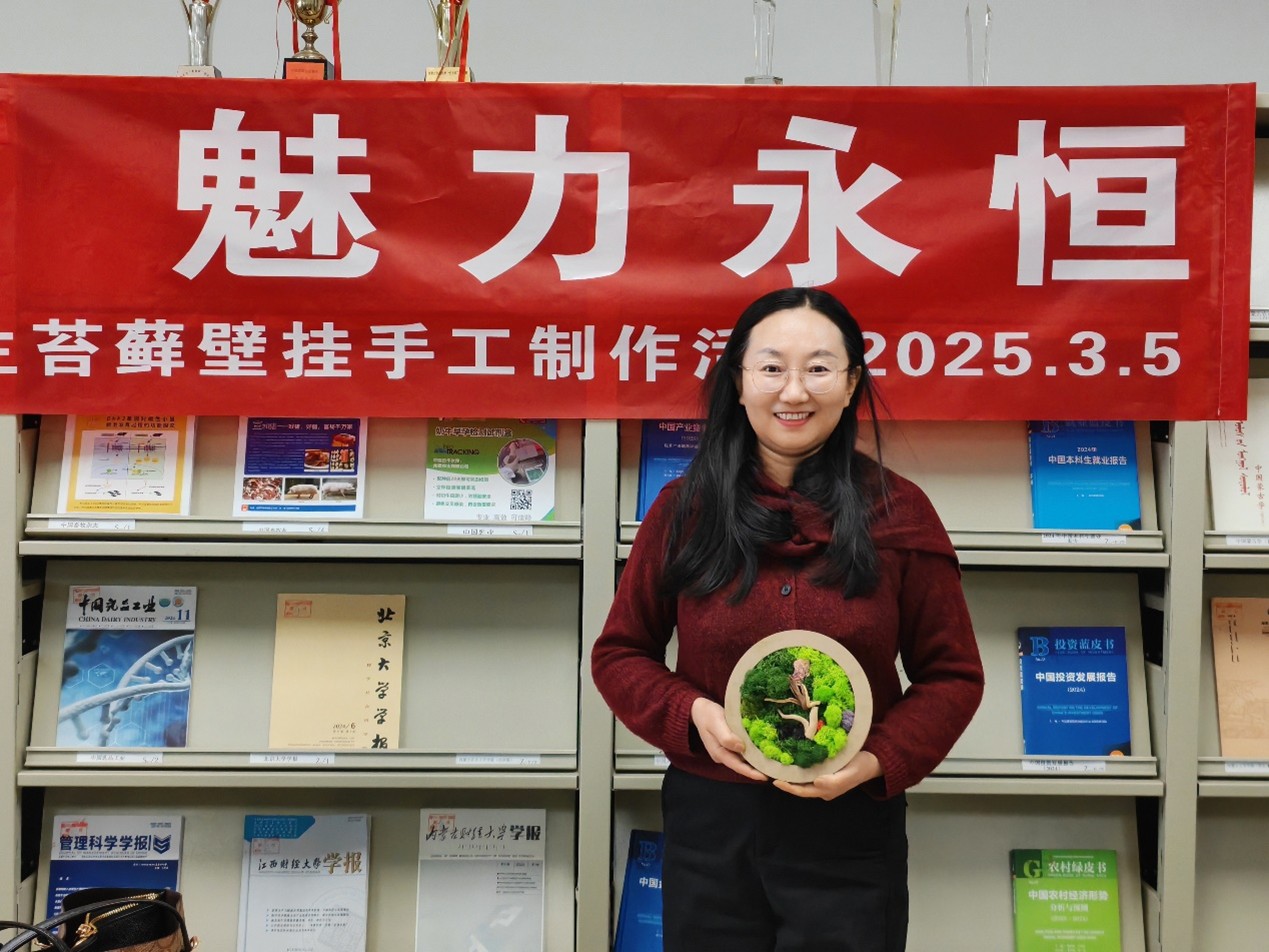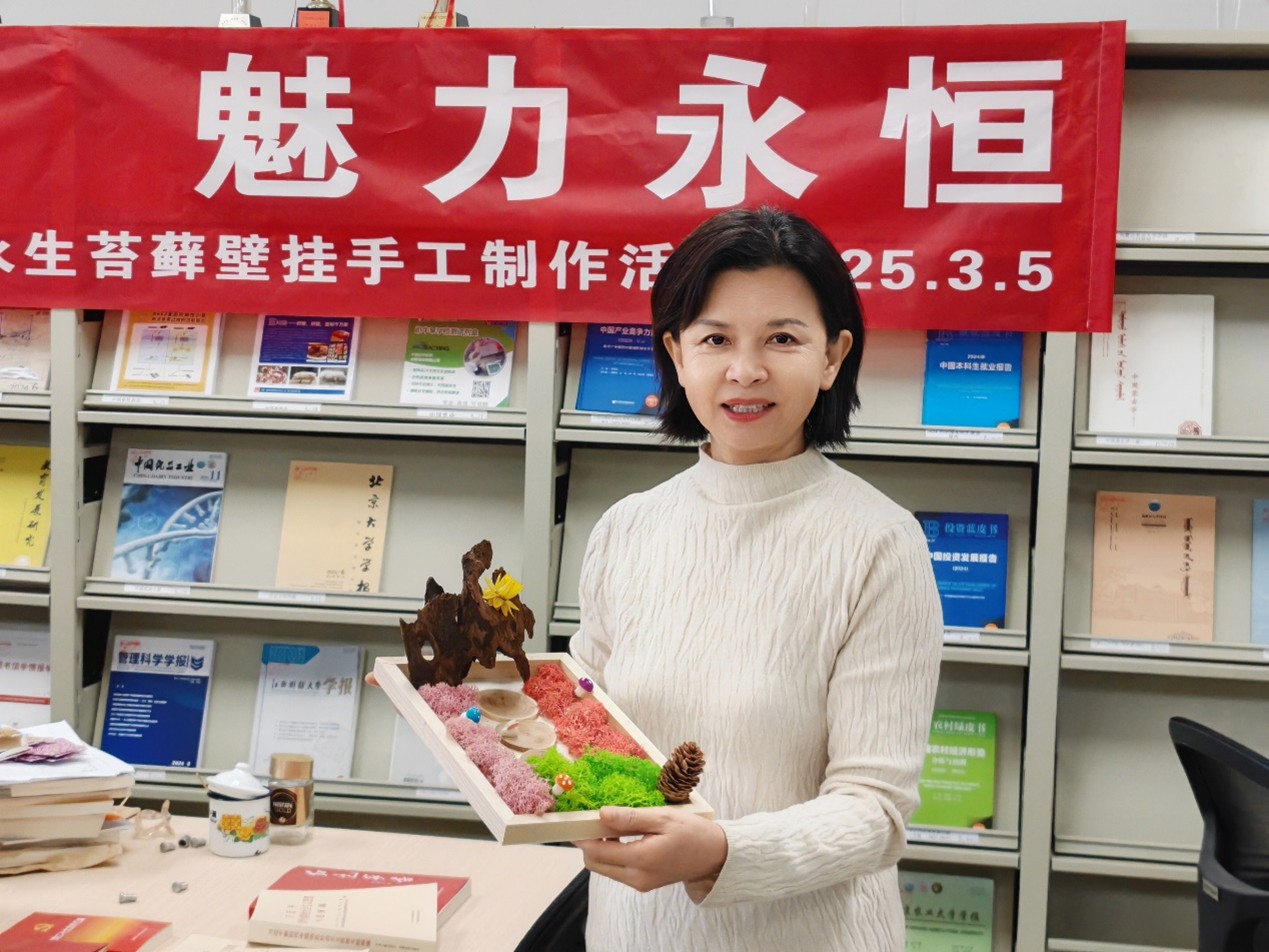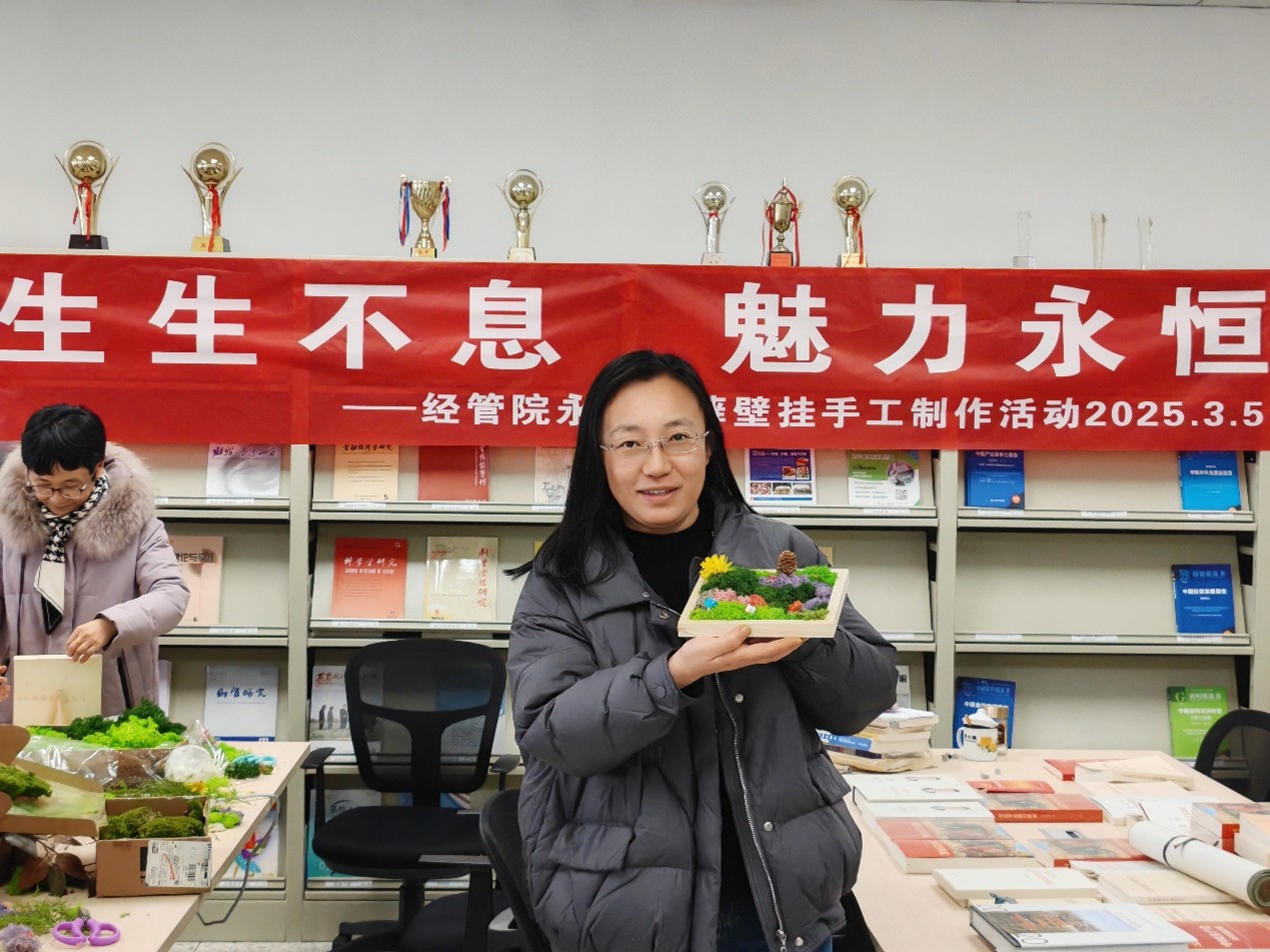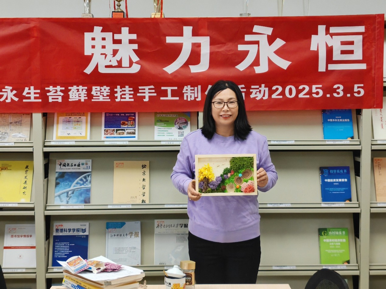 为庆祝第115个三八国际妇女节,3月5日,太阳成集团tyc33455工会精心组织了一场别开生面的永生苔藓壁挂手工制作活动,旨在将艺术欣赏与手工制作相结合,激发教师们的创新思想,展现女性风采。