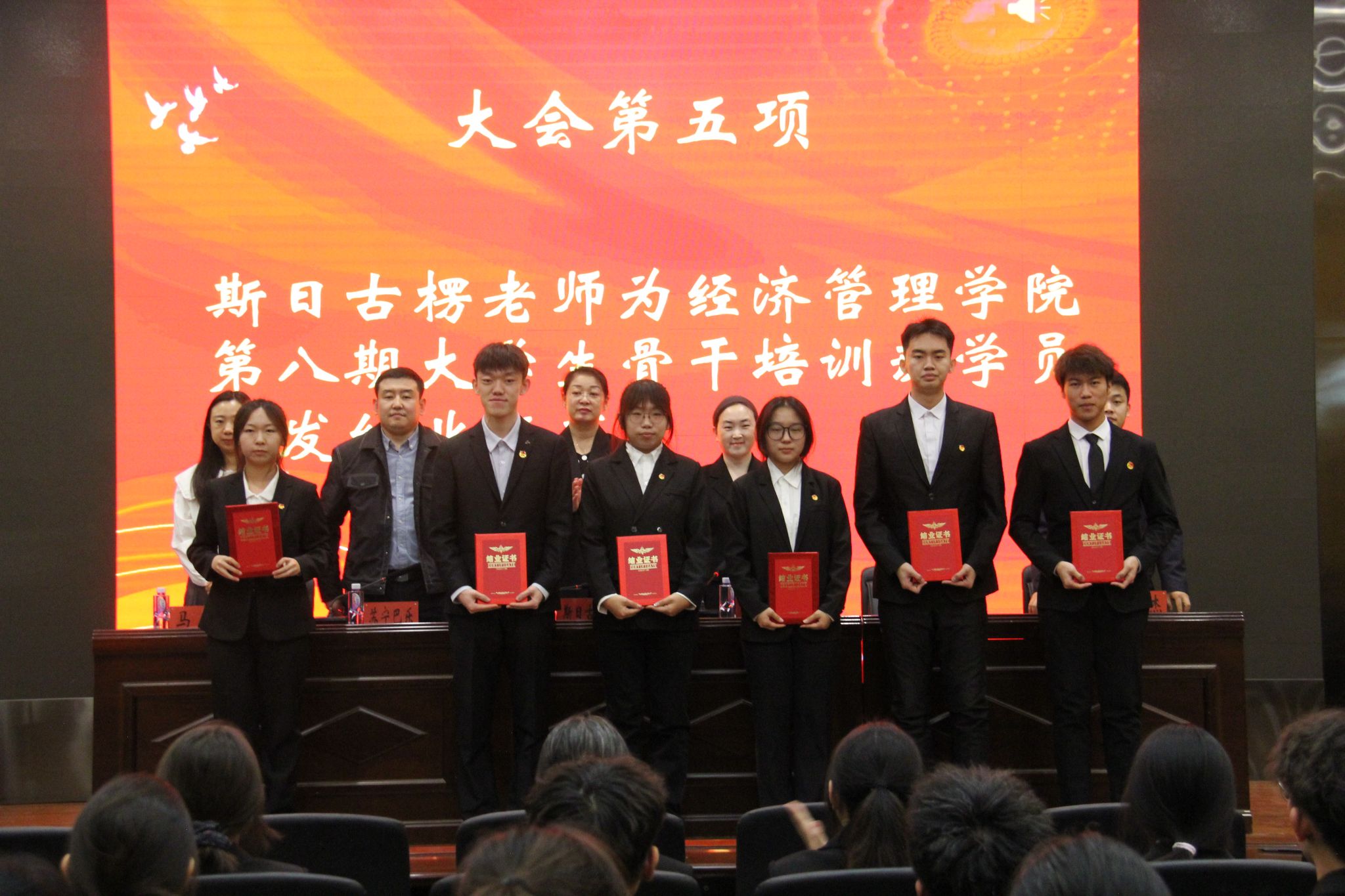 会议开始,第九期青马班员工代表李苏炫同学带领全体学员庄严宣读了入团誓词,强化了各位团员的使命意识。苏宁巴乐老师宣读了《太阳成集团tyc33455老员工骨干培训班学员纪律管理规定》。随后,老师们为第八期老员工骨干培训班优秀学员颁发了证书,第八期老员工骨干培训班优秀学员代表刘欢分享结业心得,号召大家增强四个意识,坚定四个自信,做到两个维护,自觉把个人理想融入到党和人民的共同奋斗之中,不负韶华,勇担青春使命,砥砺奋斗践行报国之志。