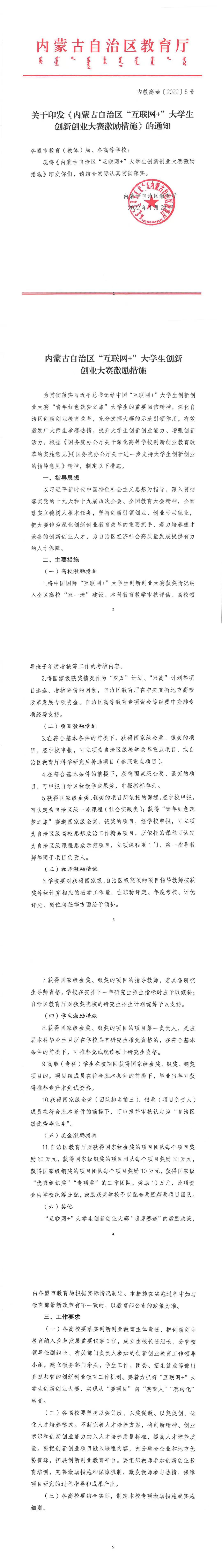 关于印发《内蒙古自治区“互联网+”老员工创新创业大赛激励措施》的通知