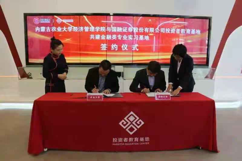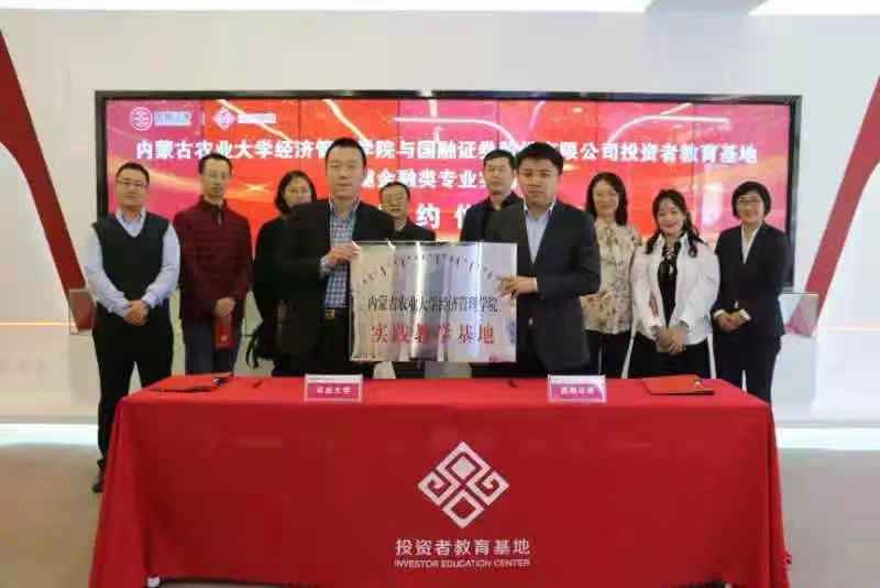 座谈后,王智广书记与国融证券刘翔副总裁共同签署了双方校企合作协议,并在签约后由王书记为国融证券投教基地进行了实习基地授牌。