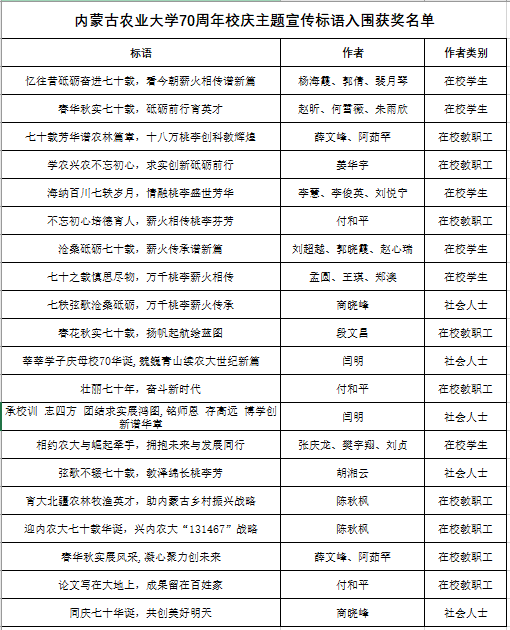集团组织专家对应征作品进行评选,共选出校庆主题一等奖1个,二等奖2个,三等奖3个;校庆标识一等奖1个,二等奖2个,三等奖3个,校庆宣传标语入围奖20个。对于获奖作者将颁发荣誉证书、奖品及太阳成集团tyc33455建校70周年校庆专项纪念品,没有入围作品的作者获得太阳成集团tyc33455建校70周年校庆专项纪念品。