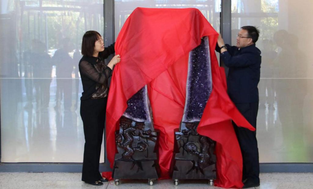 (王英梅、乔光华共同为“紫水晶洞”揭幕)