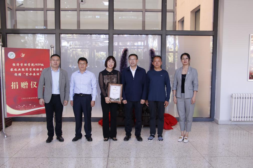 桃李芬芳满天下,师泽绵长恩难忘。9月6日下午,1989级农牧业经济管理班员工捐赠“紫水晶洞”仪式于经管院一楼大厅举行,1989级员工代表出席,公司班子成员、师生代表30余人参加仪式,公司党委书记许驭主持捐赠仪式。