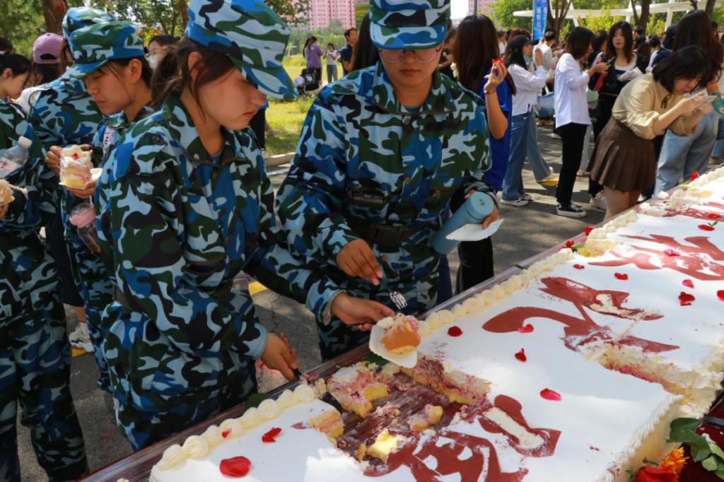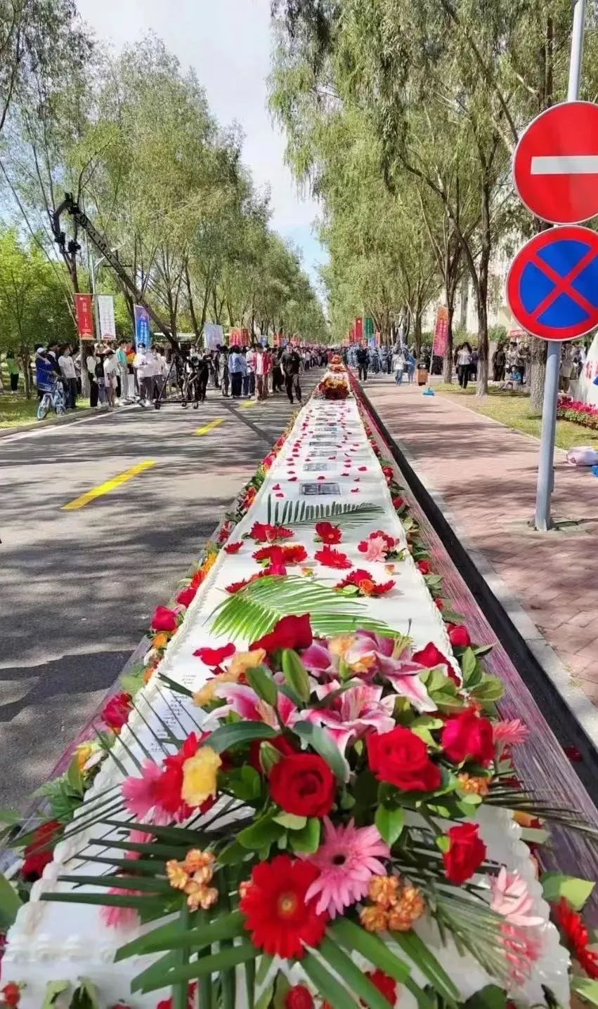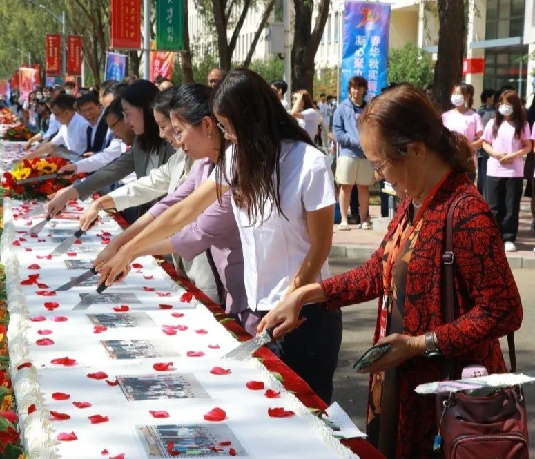 在师生的热烈掌声中,嘉宾、员工代表为长达70米的巨型蛋糕长龙剪彩,斯日古楞副书记为员工回赠证书,张建成副经理、柴智慧副经理向员工回赠纪念品。校庆、院庆蛋糕是员工们同心同德、奋勇向前的印记,是其情系母校与公司的瑰丽见证,寓意着共同开创高水平农业大学建设新辉煌,共同把公司发展这块“蛋糕”做得更大、做得更甜的美好憧憬,更是对公司四十年发展笃行不怠、时盛岁新的讴歌。
