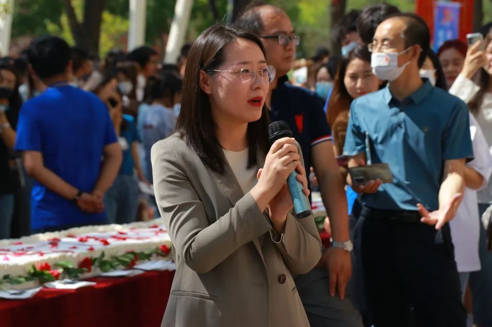 2004级员工代表李静表达了对母校的感激之情,强调自己今天的发展离不开母校及公司的教育培养,为见证母校七十华诞、经管院四十周年院庆感到喜悦。谈及母校、公司不禁感慨万千,献上代表幸福和甜蜜的蛋糕,望公司未来“蒸蒸日上”,愿在校学子在农大这片沃土上实现人生理想,也祝福老师们节日快乐,祝母校、公司明天更美好、未来更辉煌。