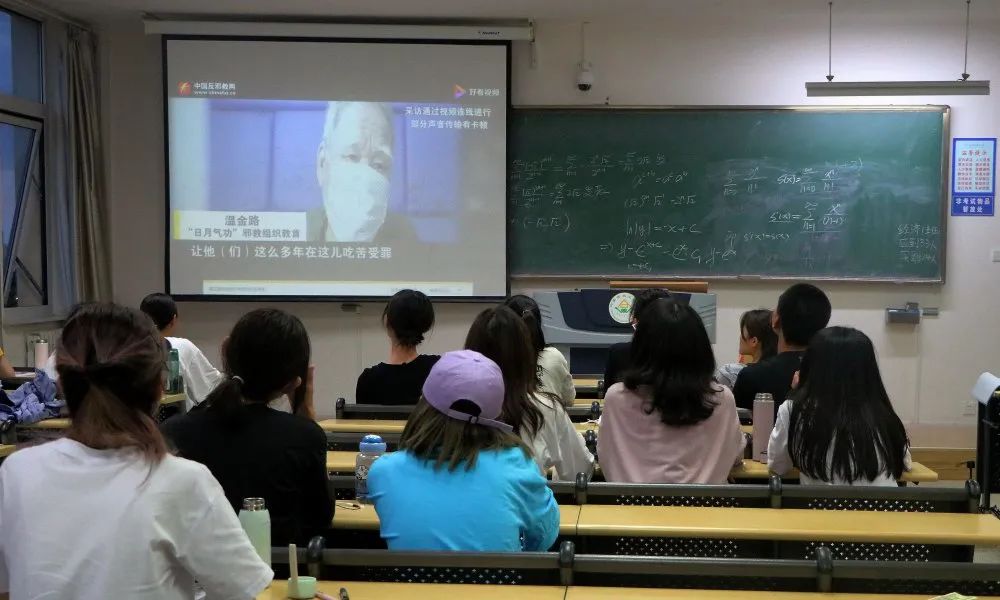 教育片以鲜活生动的例子揭露了邪教组织残害群众的邪恶本质,深入浅出地对邪教的危害进行了剖析,用事实案例说明邪教组织传播歪理邪说、实施思想控制、欺骗聚敛钱财等扰乱居民生活、危害社会稳定的巨大危害。通过观看视频,同学们纷纷表示要远离邪教,抵制邪教,崇尚科学,坚决做到不听、不信、不传、使邪教组织无立足之地。