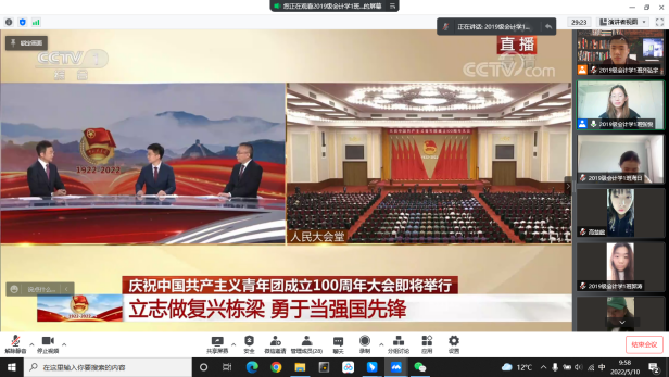 经管院组织各团支部线上观看庆祝中国共产主义青年团成立100周年大会